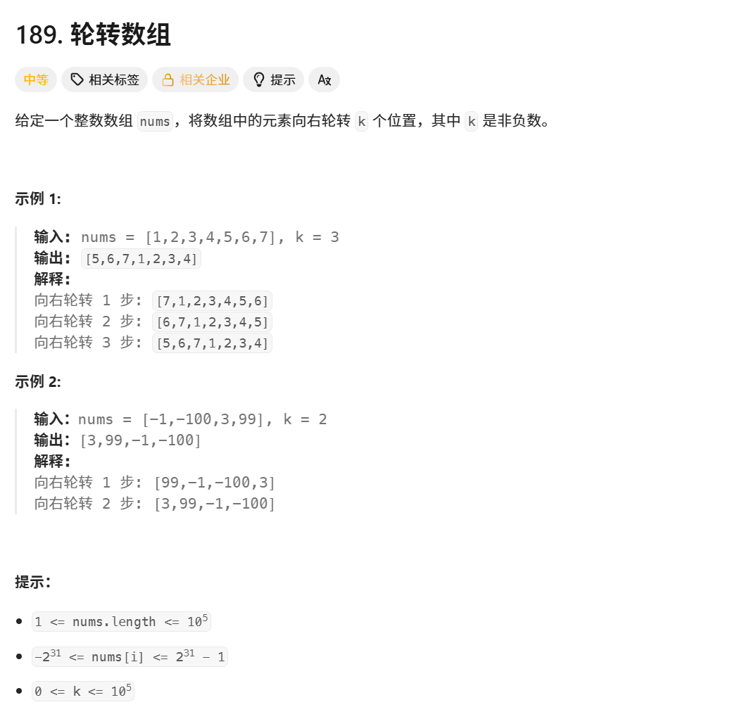 nums[0]=tmp;//将之前存储的最后一个元素tmp放到数组的开头,完成一次右旋转