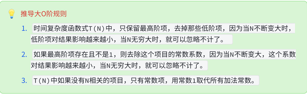 计算时间复杂度只是想比较算法程序的增长量级,也就是当N不断变大时T(N)的差别,上面我们已经看到了当N不断变大时常数和低阶项对结果的影响很小,所以我们只需要计算程序能代表增长量 级的大概执行次数,复杂度的表示通常使用大O的渐进表示法。
