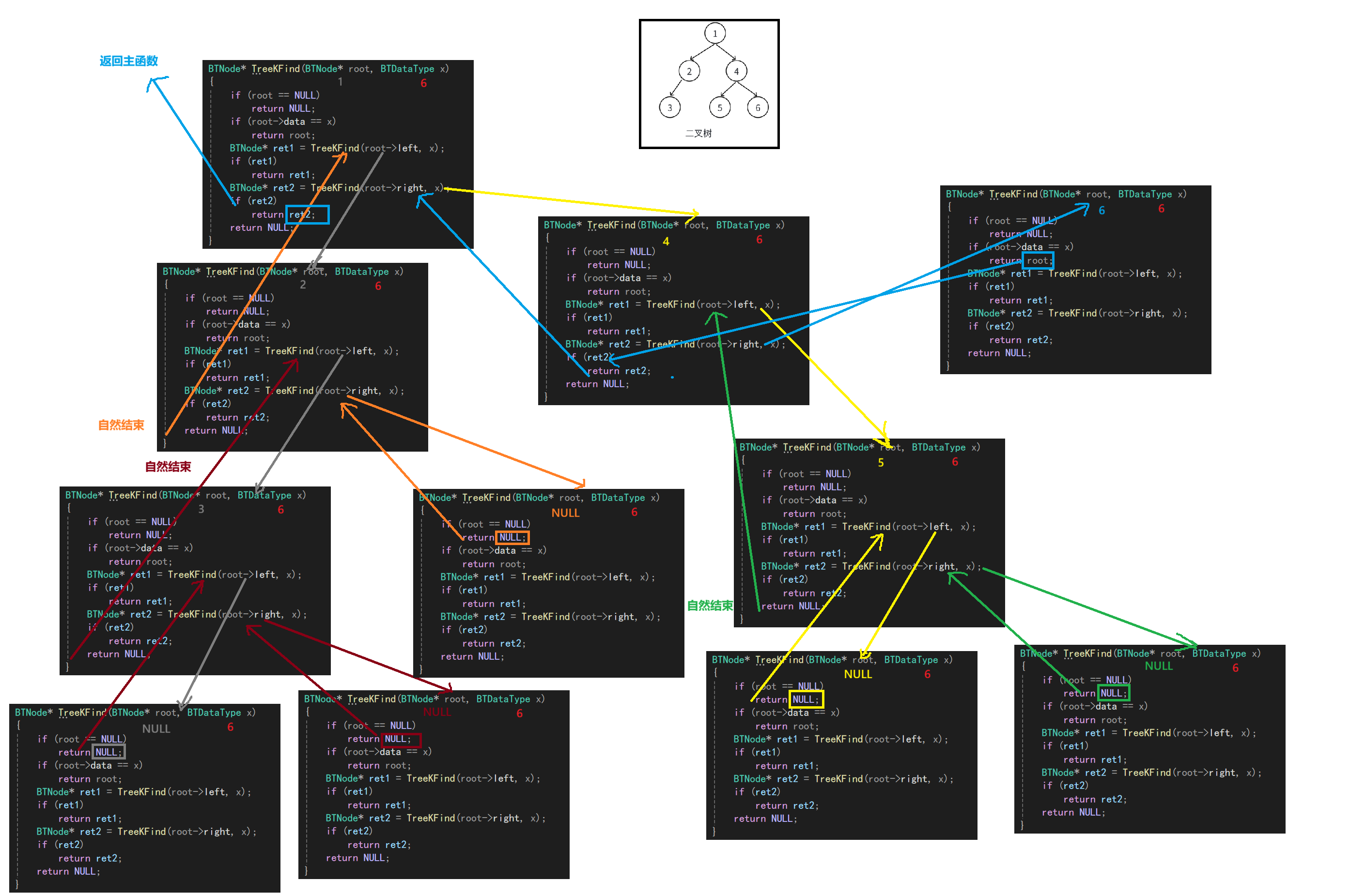 思路:判断root是否为空,为空返回NULL,subRoot一定不为空