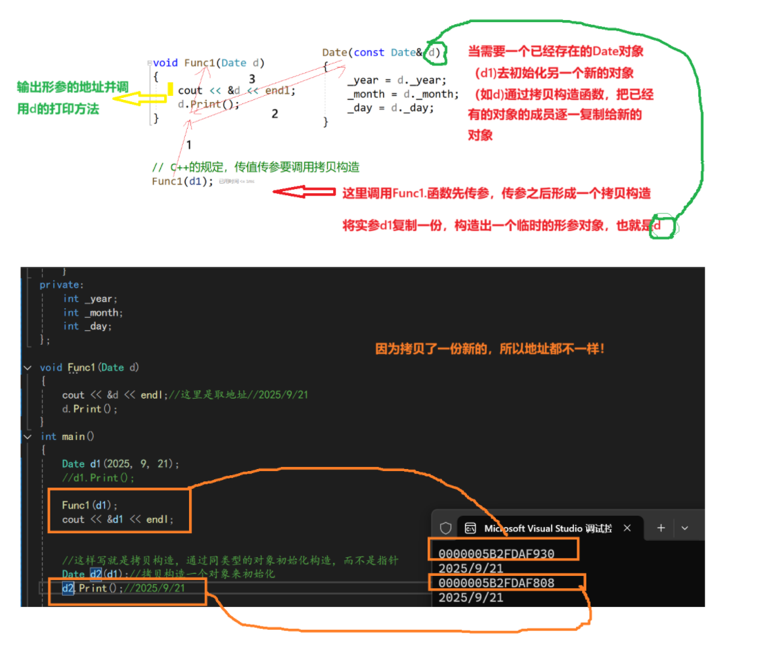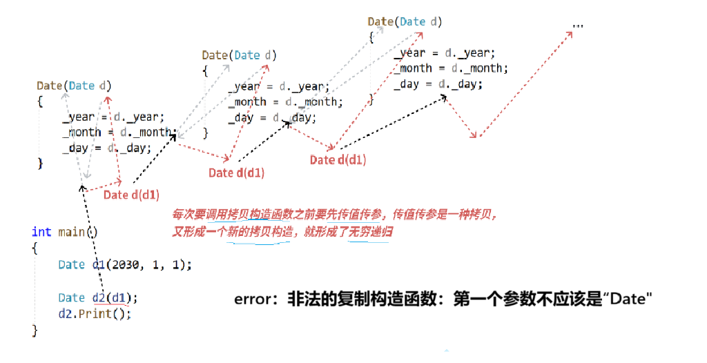 //Date(Date d)//这样写不对,“Date”: 非法的复制构造函数: 第一个参数不应是“Date”