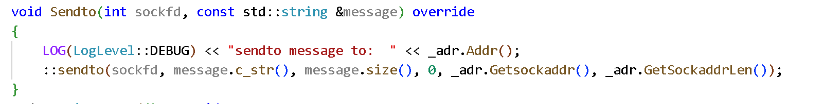 void Sendto(int sockfd,const std::string &message) override//sendto要使用到文件描述符和信息都是从外界传入的