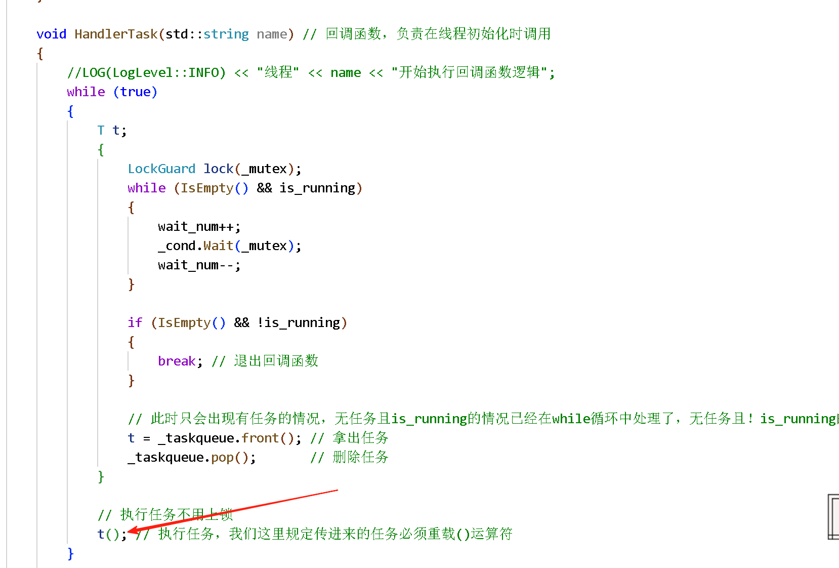 // 我们需要将this指针绑定到HandlerTask函数中,这样才能在HandlerTask函数中访问到线程池的成员变量