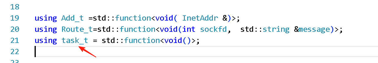 using Route_t = std::function<void(int sockfd, std::string &message)>;并在服务端类中新增对应成员变量,并新增一个注册接口,用来对其进行初始化: