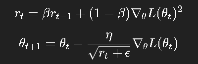 RMSProp(Root Mean Square Propagation)通过指数加权移动平均取代累积和, 让优化器既能记住近期梯度信息,又能逐渐忘记久远的梯度。