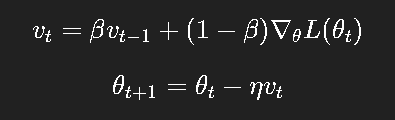 物理直觉上,一个物体在斜坡上滚动时,速度不会突然变成 0,它会保留之前的动量。 在优化中,我们希望让参数更新“具有惯性”,不要每次都完全依赖当前梯度。