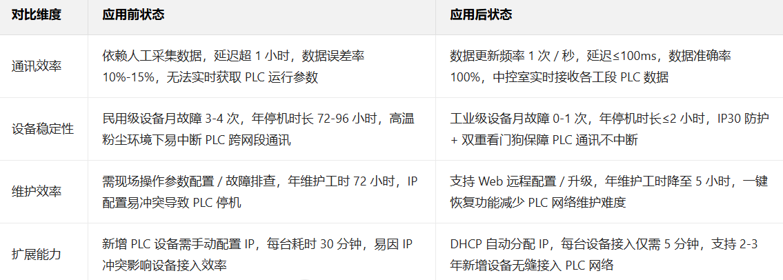 本次应用中,YC8000-NAT-W3精准解决工厂跨网段、环境适应性、管理扩展痛点,部署高效且对生产影响小。设备不仅实现实时跨网段通讯,更将故障风险与维护成本大幅降低,为工厂创造显著经济价值。