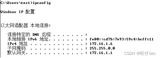 确认渗透机ip地址172.16.1.6