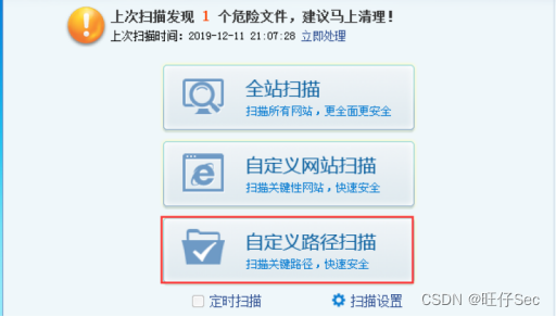 打开靶机桌面上的网站安全狗,选择自定义路径扫描对网站进行扫描