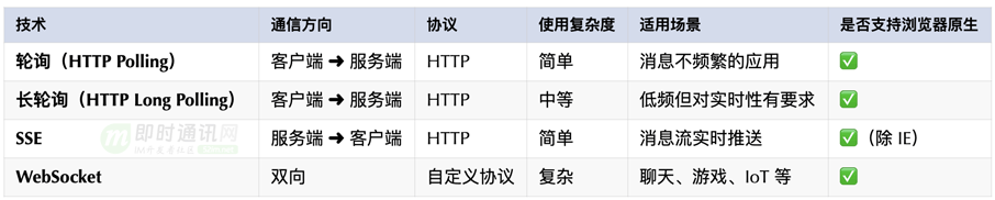 网页端IM通信技术快速入门:短轮询、长轮询、SSE、WebSocket