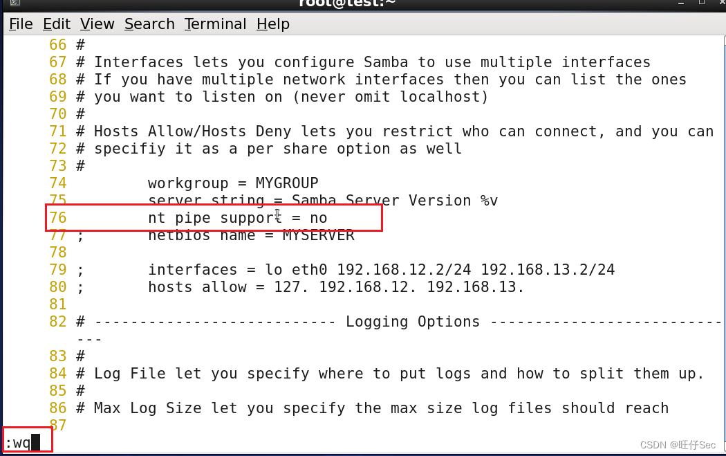 使用命令vim /etc/samba/smb.conf在smb.conf文件中的[global]节点下增加 nt pipe support = no 选项,然后重新启动samba服务临时关闭pipe支持以防止此漏洞。