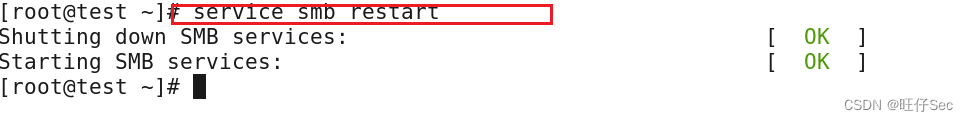 使用命令service smb restart,然后使用命令service smb reload 重新加载smb配置文件,并重启服务