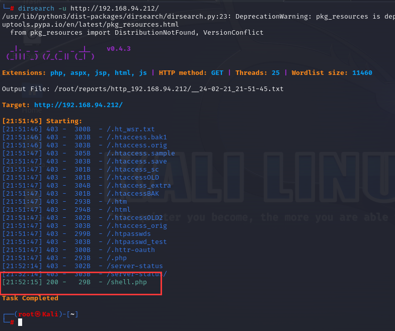 访问靶机80端口之后没发现有什么可利用的信息,于是直接上dirsearch搜索到一个shell.php文件