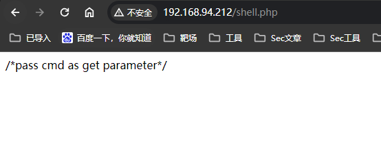 访问shell.php文件发现有一串提示,通过翻译后得知可以将cmd作为GET参数传递