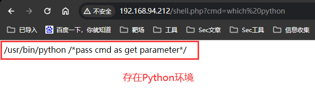 查看目标类型,默认为Python类型,所以我们也可以使用传参来查看靶机存不存在Python环境