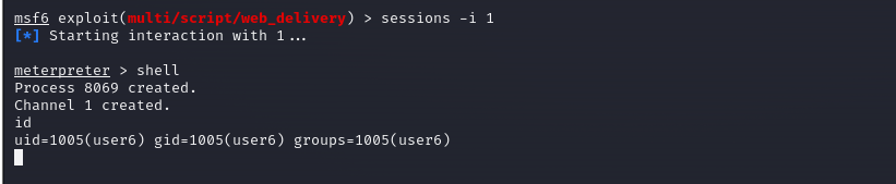 使用cmd进行传参,返回kali中弹回了一个session,直接连接这个session得到shell