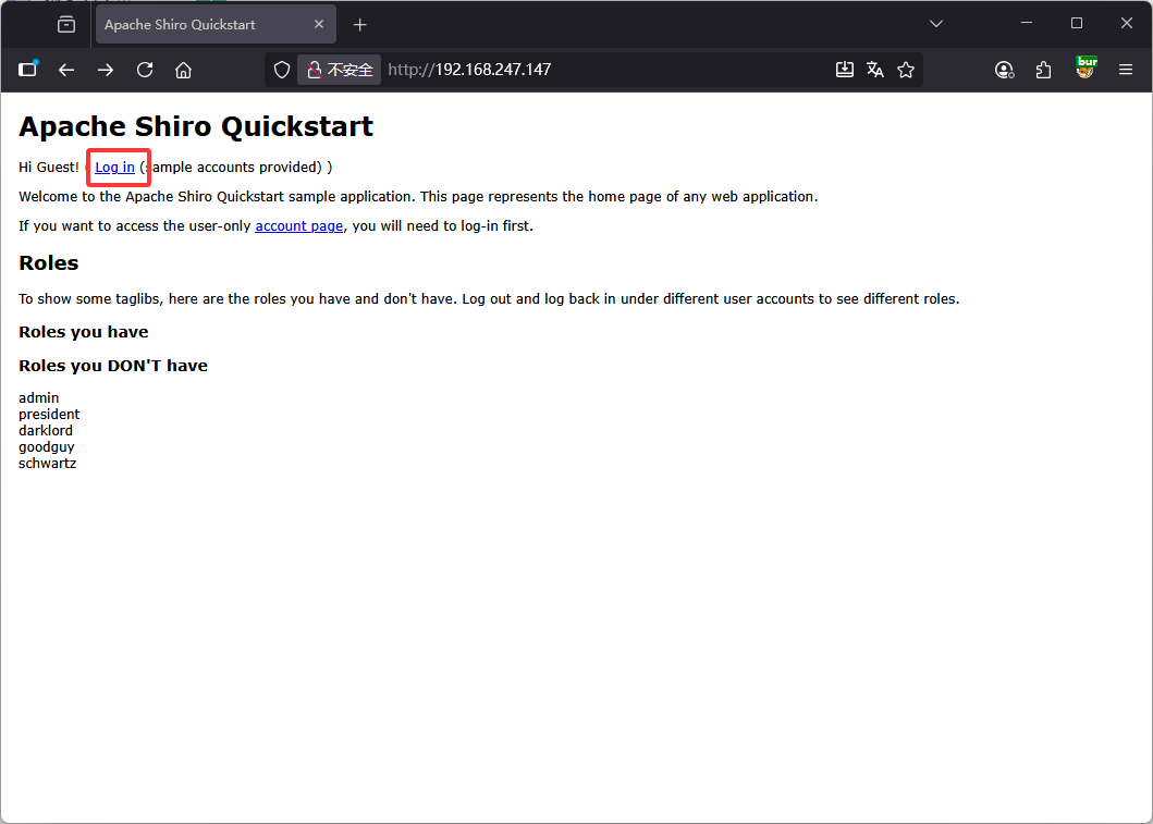 通过web访问kali的IP地址,点击log in跳转到登录页面