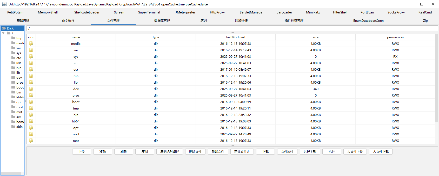 接下来点击“命令执行”,输入想执行的命令,就可以直接执行命令了。这里输入了whoami,回显为root,又输入了ls -al 成功看到了所有的文件及其权限等等。