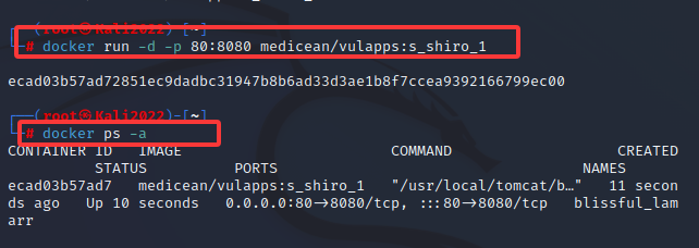 docker run -d -p 80:8080 medicean/vulapps:s_shiro_1