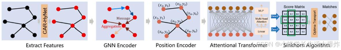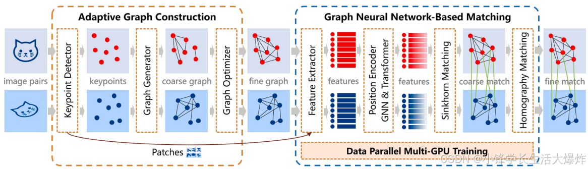 图片里的关键点,不就是“点”吗?点与点之间的关系,可以用“边”来表示。而图结构恰好能自然表达图像中关键点及其空间关系。通过将特征点建模为图的顶点,特征相似性与空间邻近关系作为边,图神经网络能够直接学习点与点之间的依赖关系,为图像匹配提供新的思路。