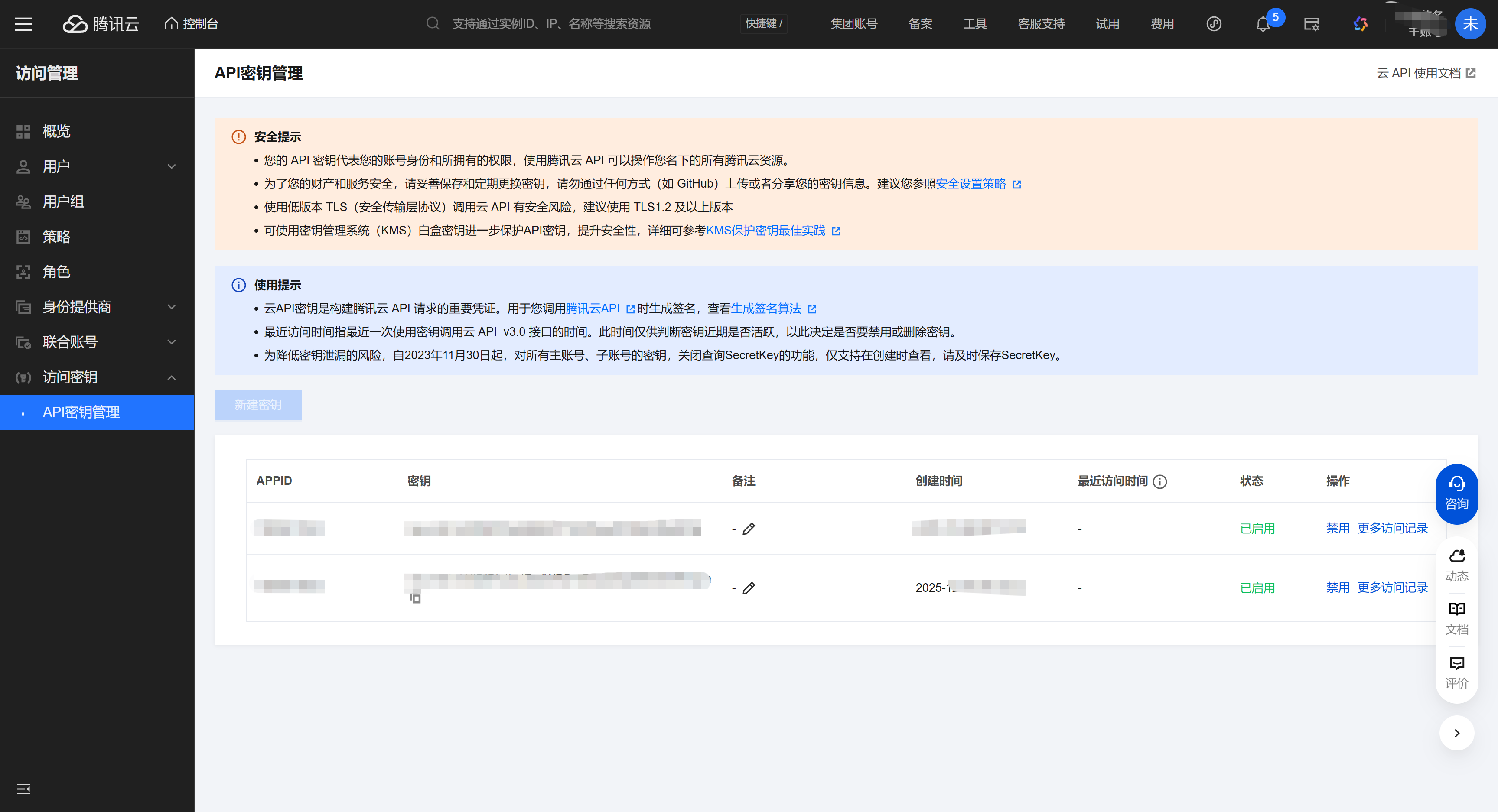 # 腾讯云API密钥