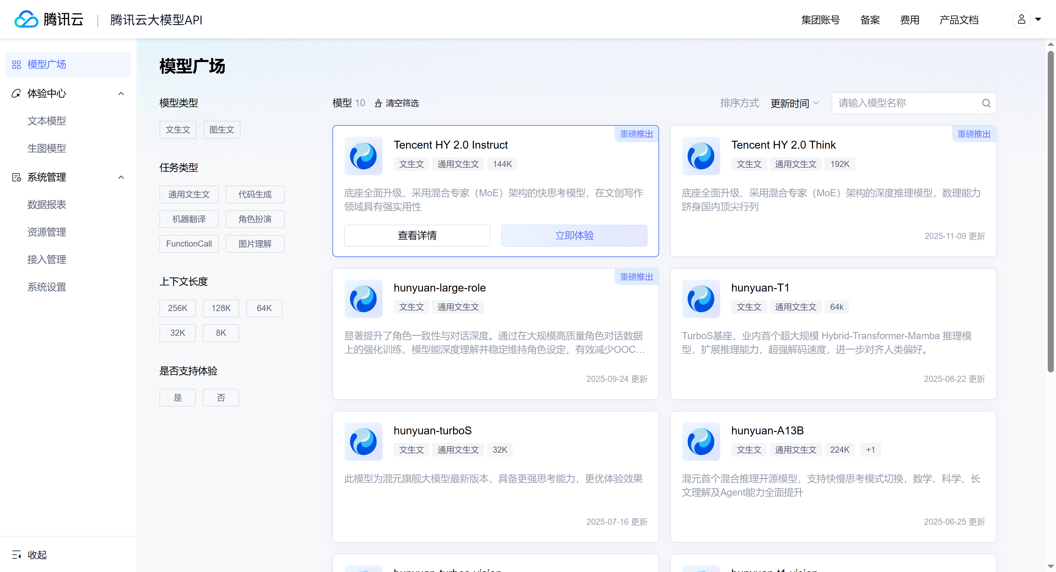 3.获取到key后就可以在模型广场,查看、挑选我们需要的模型,进行体验或选择使用了。