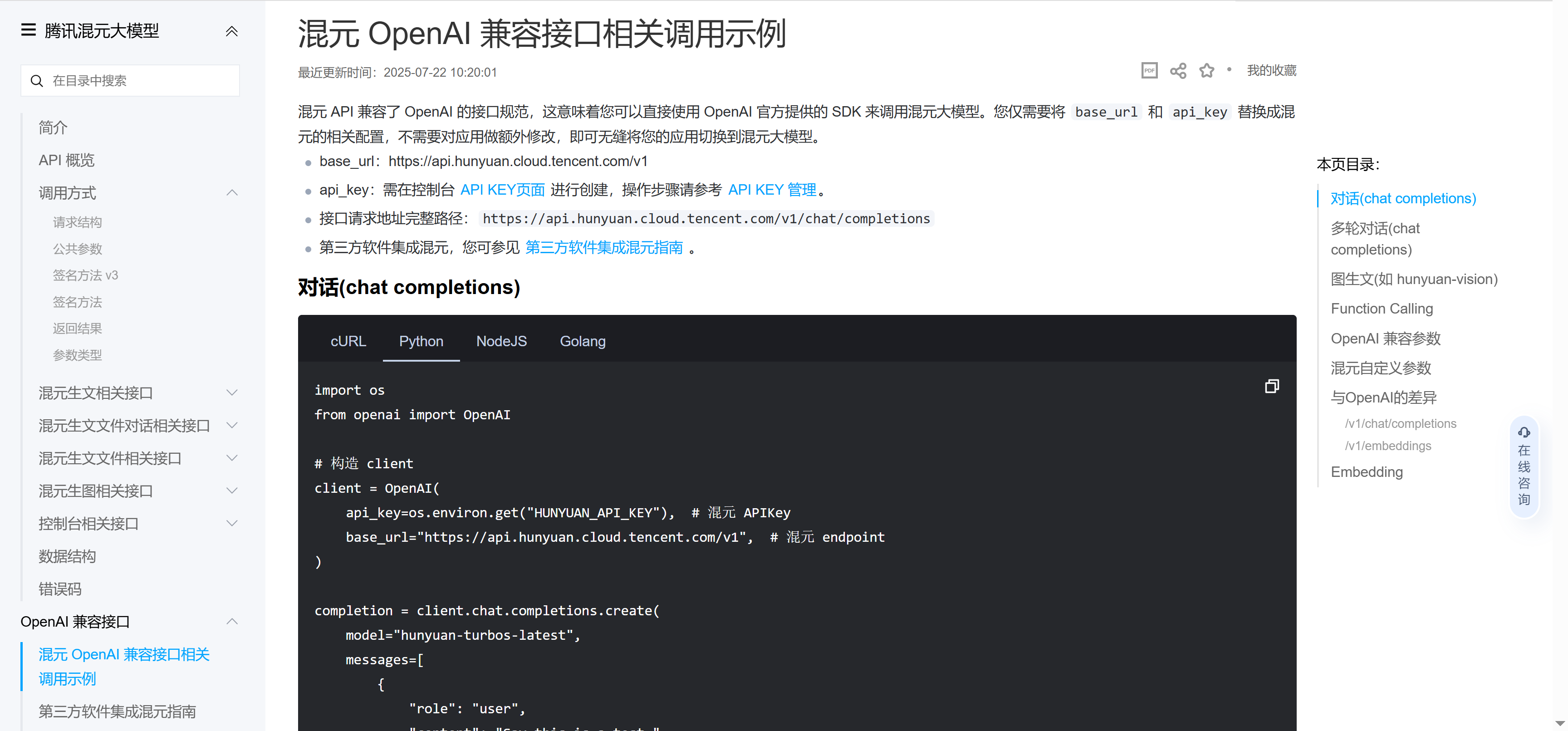 5. 混元 OpenAI 兼容接口相关调用示例: