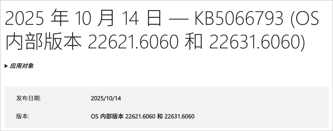 映像已更新至10月份版本,安装后版本号为 22631.6060