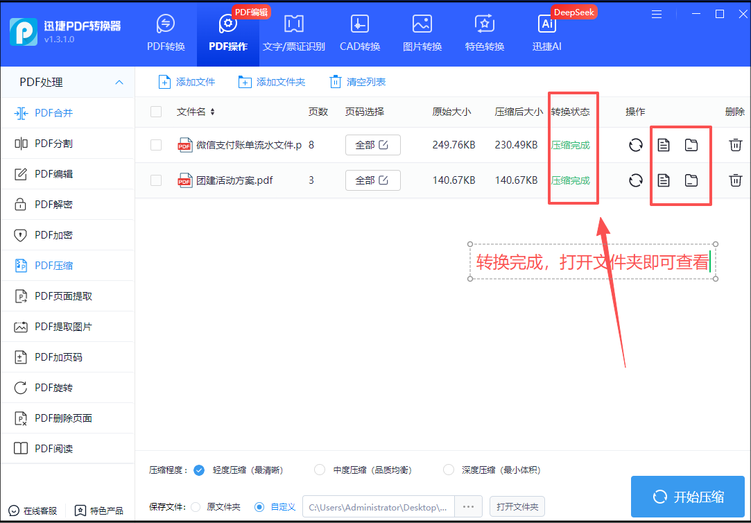 转换状态显示‘压缩完成’即可得到压缩后的PDF文件,打开文件夹即可查看~