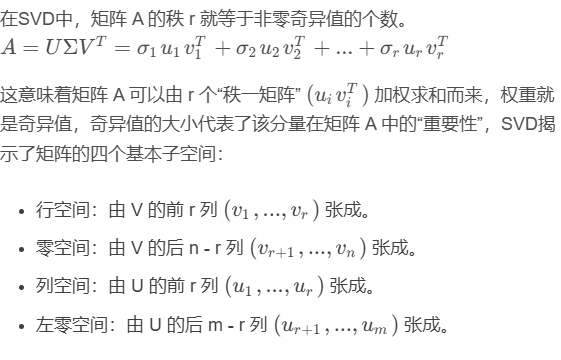 数学推导 SVD可以被看作是特征分解在任意矩阵上的推广,特征分解只适用于方阵,而SVD适用于任何矩阵。