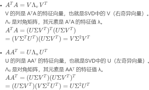 对于一个 m × n 的实数矩阵 A,其转置Aᵀ为一个n × m的实数矩阵,考虑 AᵀA 和 AAᵀ两个实对称方阵(并且是半正定的),其中