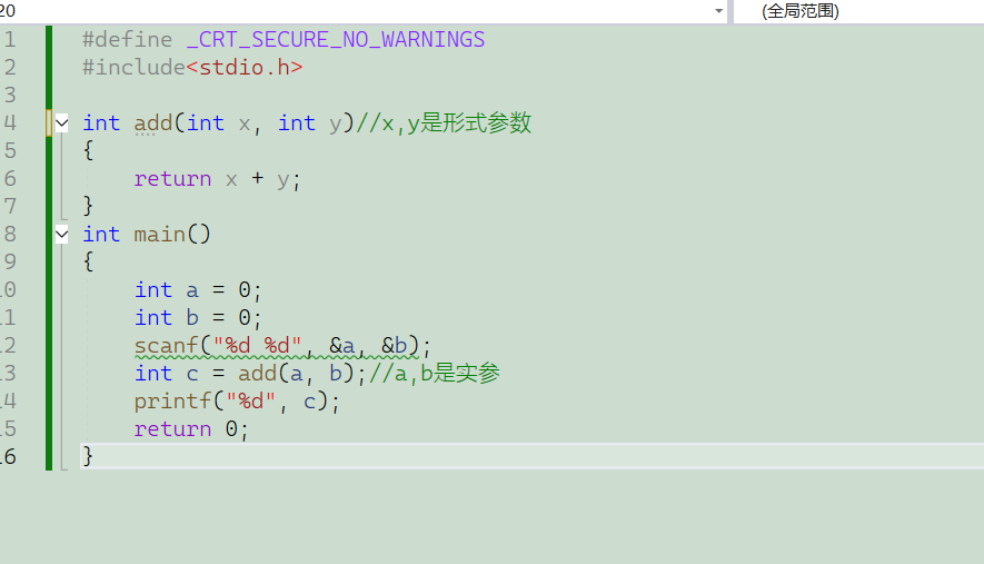 我们来看个加法函数,了解一下函数的构成以及形参和实参;