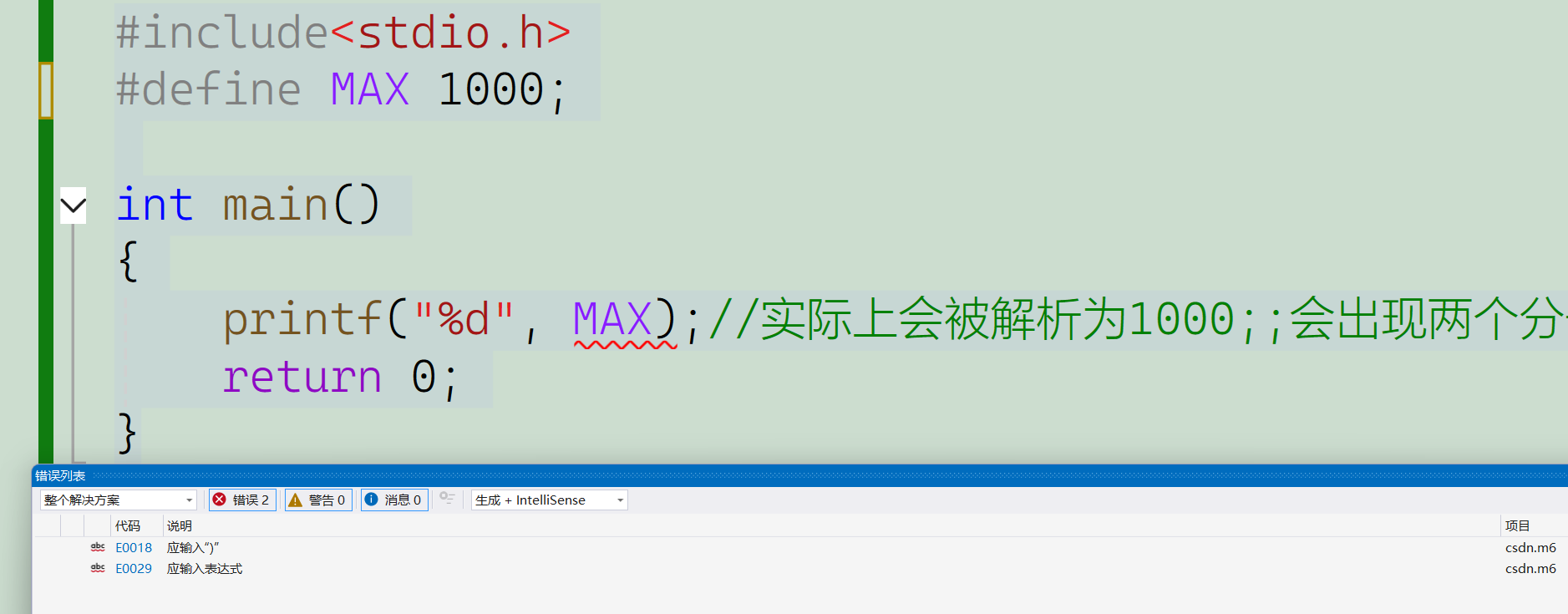printf("%d", MAX);//实际上会被解析为1000;;会出现两个分号