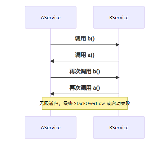 }结果:启动失败,提示循环依赖。