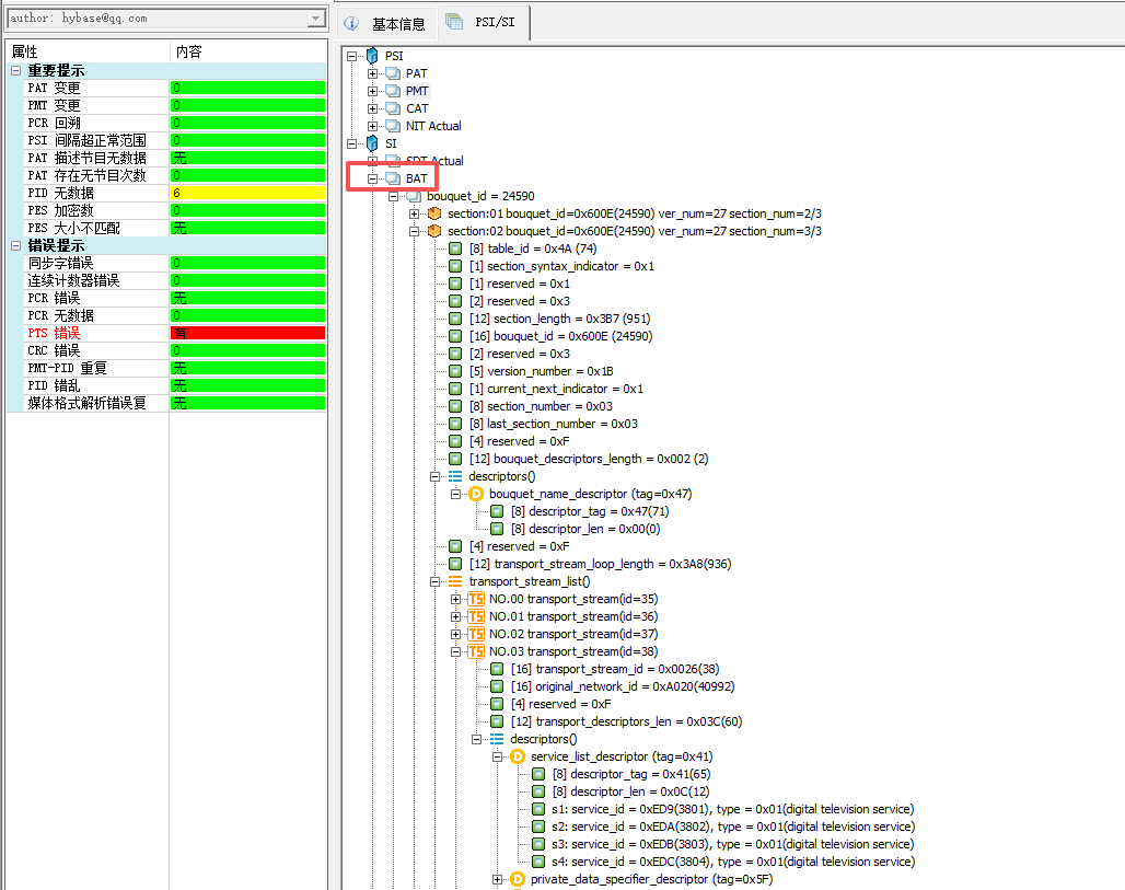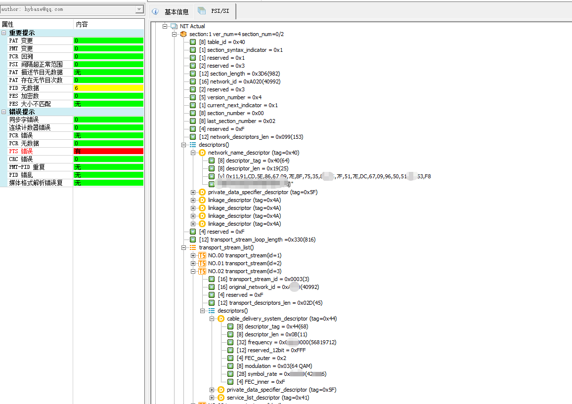 另外,新版本增强了PSI/SI的功能,可以参考后面抓图的介绍。