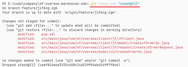 如果有多个暂存记录,可以在命令后面跟上对应暂存记录的版本记录 ID 来应用特定的暂存记录