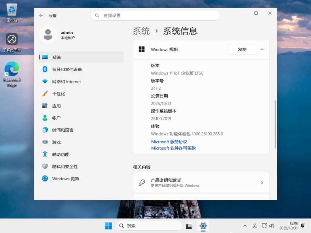 IoT版本(无TPM硬件限制),Win11系统镜像版本号24H2,已集成至2025年10月28日更新补丁,安装后版本号为26100.7019
