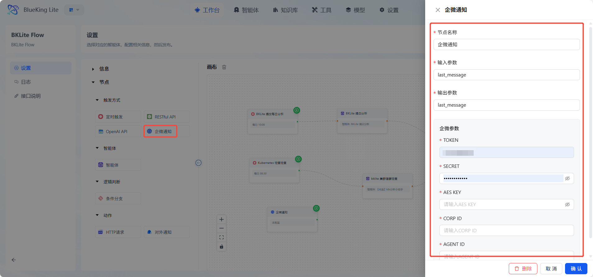 企微通知:这是专门针对中国企业微信环境的场景化触发方式,让AI流程能够直接响应企业微信中的聊天消息或事件。