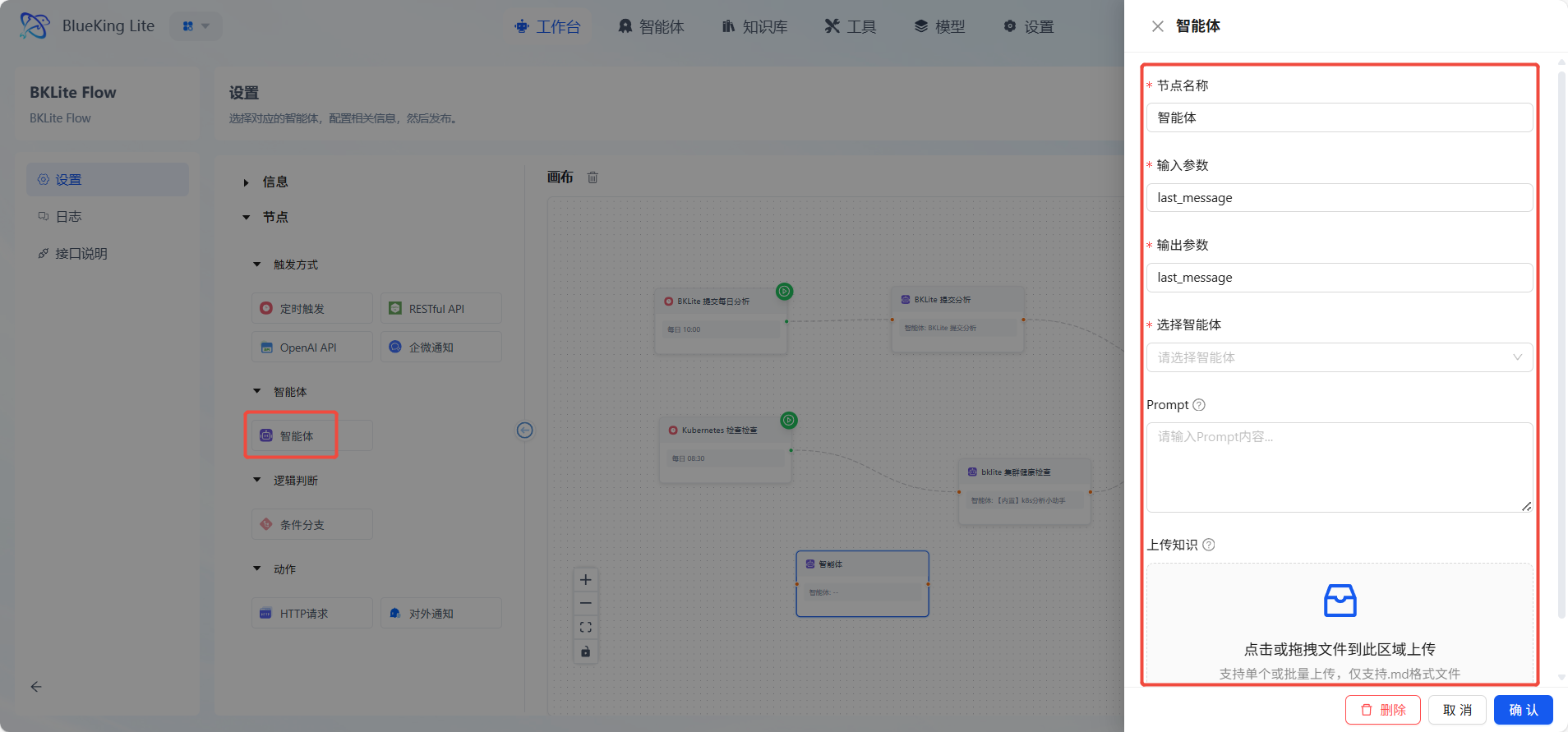 智能体节点是整个系统的核心处理单元,主要集成大语言模型能力。它接收上游传递的上下文信息,通过精心设计的提示词模板引导模型完成特定任务,包括文本生成、信息分析、逻辑推理等。