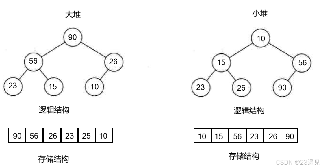 大堆 :完全二叉树;任何一个父亲大于等于孩子(兄弟之间没有规定大小关系);根是最大的。