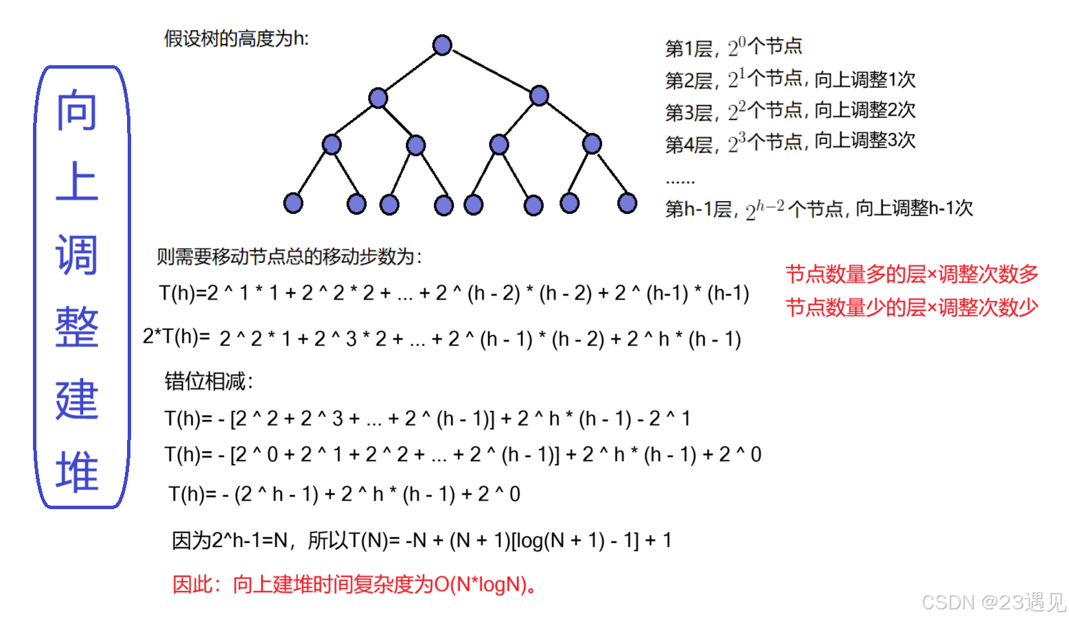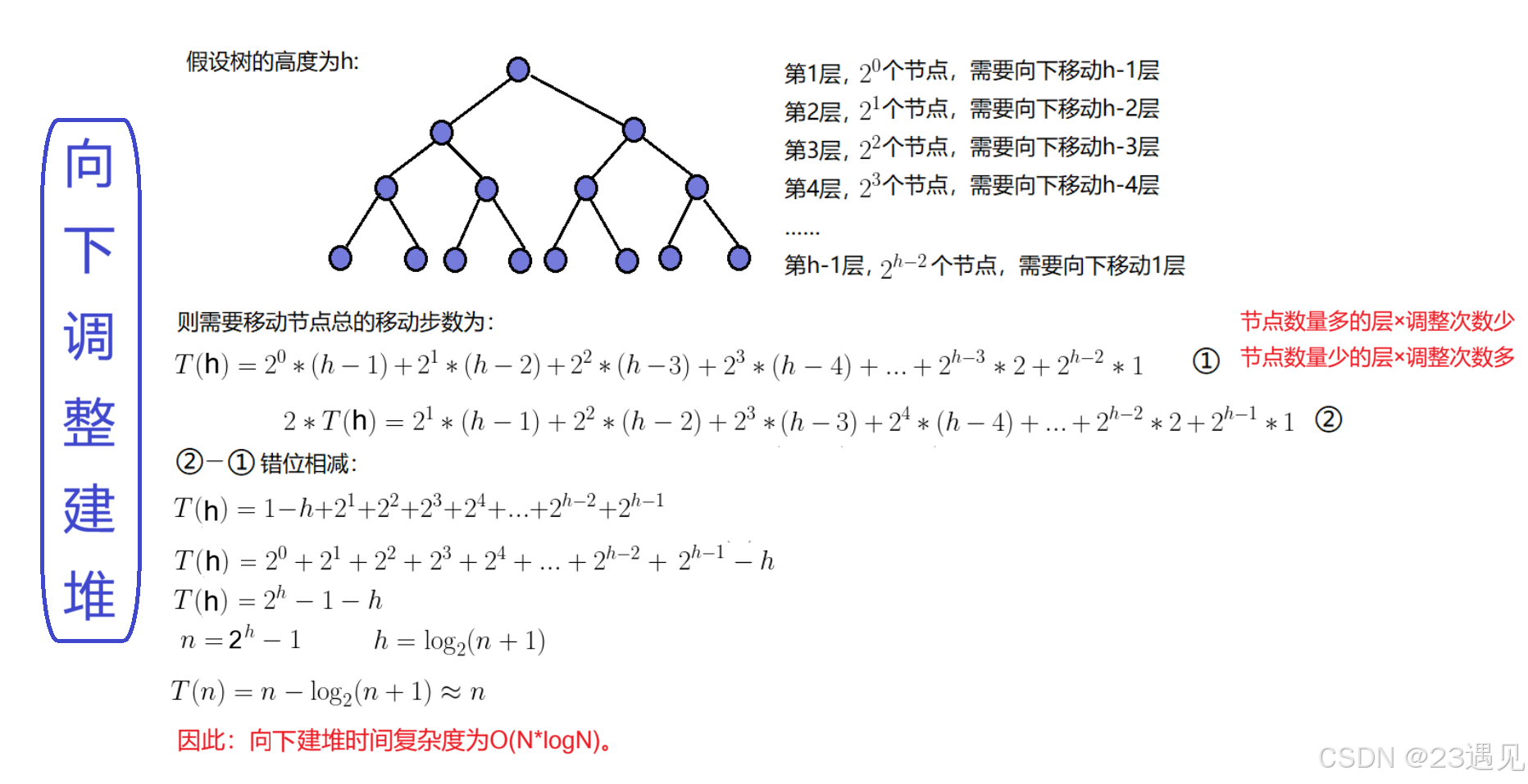 堆是完全二叉树,满二叉树也是完全二叉树,这里使用满二叉树来证明(时间复杂度看的是近似值):