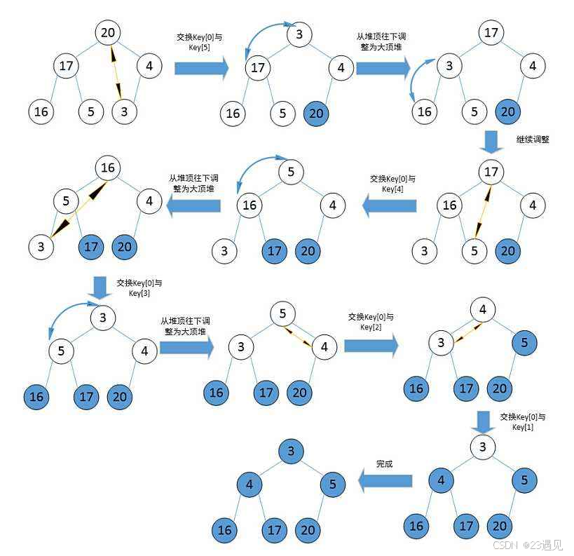 建堆和堆删除都用到了向下调整,因此需要掌握向下调整,就可以完成堆排序。