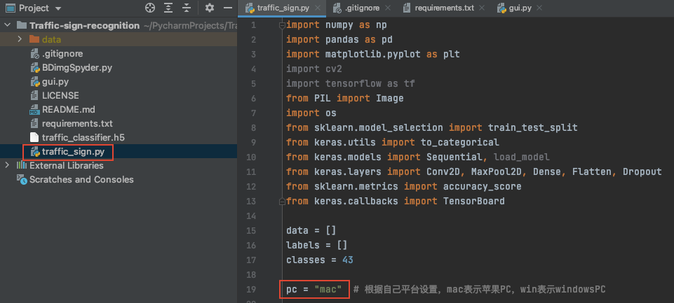 gui.py 文件查看效果pc = "mac" # 根据自己平台设置,mac表示苹果PC,win表示windowsPC不同系统有不同的路径表示方法,windows上路径都是右斜杠