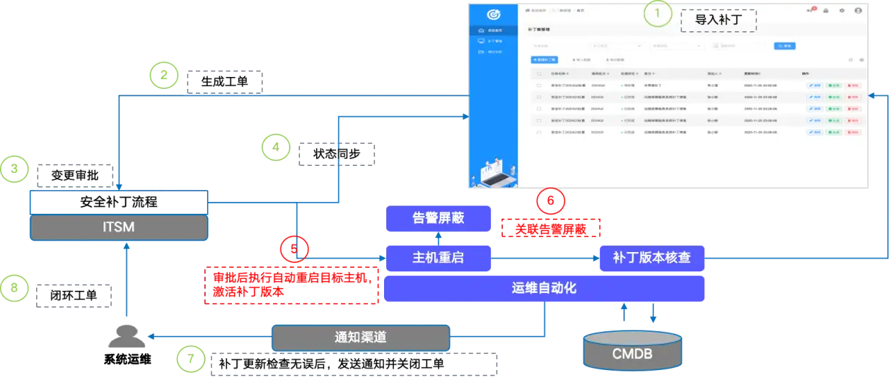 由于严格的监管要求,基金公司的补丁安装工作任务相对较为繁重,人工打补丁的方式操作耗时长,跟踪统计困难,导致效果难以保障。通过自动化+ITSM流程相结合的方式,可实现补丁安装责任到人,分门别类,批量安装,同时便于统计复盘,能够不断减少在补丁安装上的人力投入,实现闭环管理。