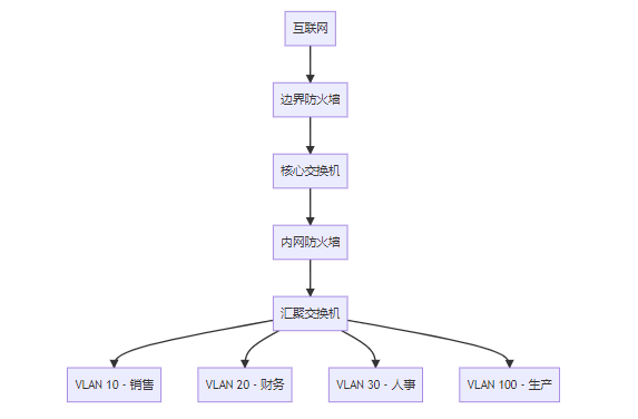 VLAN分段 | 二层隔离,灵活性好 | 中小型企业 | ⭐⭐⭐ |