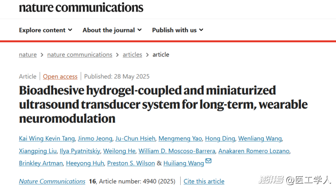 为攻克这一难题,来自德克萨斯大学奥斯汀分校的科研团队,成功研发了一款微型化、可穿戴的超声神经调控设备——MiniUITra。该系统巧妙地将自聚焦超声换能器与一种创新的长效生物粘附水凝胶相结合,实现了如创可贴般便捷的长期佩戴和精准的皮层刺激。这项发表于《Nature Communications》的研究,为无创神经调控技术走向长期、家庭化应用铺平了道路 。