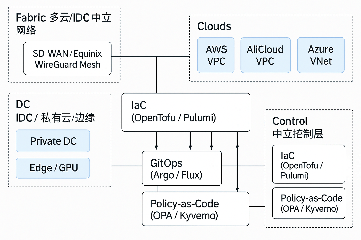 - 控制平面保持中立与声明式(IaC / GitOps / Policy-as-Code),