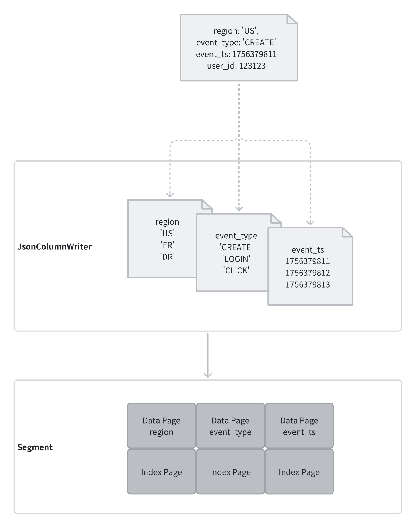 基于这一架构,FlatJSON 在数据导入阶段进行列化存储:
