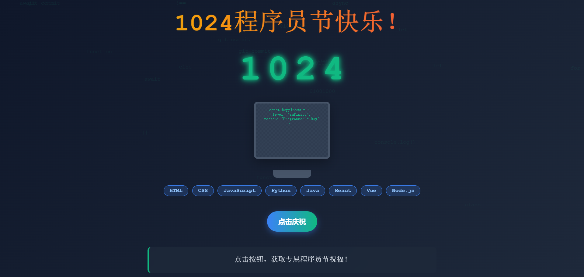 <div class="blessing" id="blessing">点击按钮,获取专属程序员节祝福!</div>