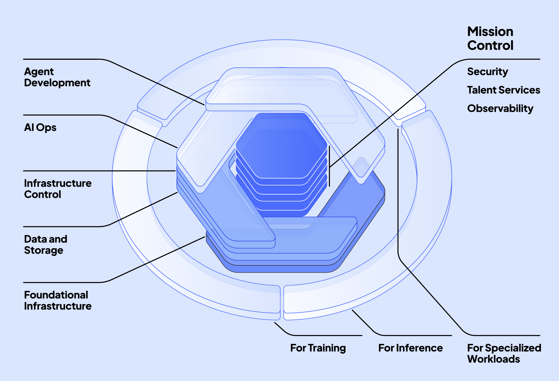 在传统云中,编排、调度和监控是分散的工具集,而在AI云中,这些要素被统一于一个任务控制(Mission Control)的单一记录系统。这个系统协调科学家、开发者和IT管理人员的竞争需求。可见性被深入编织至芯片层,能够在每次运行中跟踪超过10万个指标,从而实现对成本和性能的主动优化。