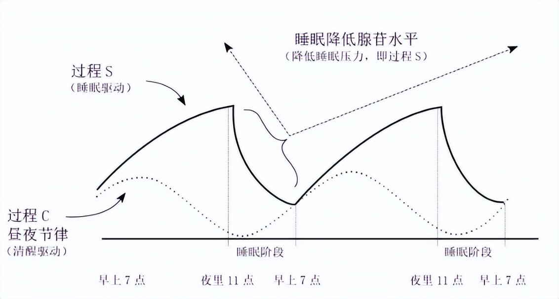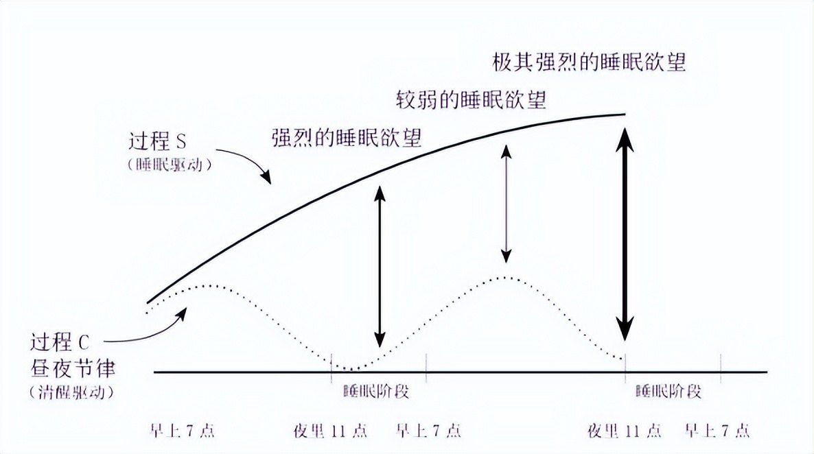 我们不妨思考一下,假如下午三点后我们睡到了傍晚,等真正到了深夜我们可能睡不着;又或者我们大晚上喝了奶茶,也会出现难以入睡的情况。说明昼夜节律不是影响睡眠的全部因素。
